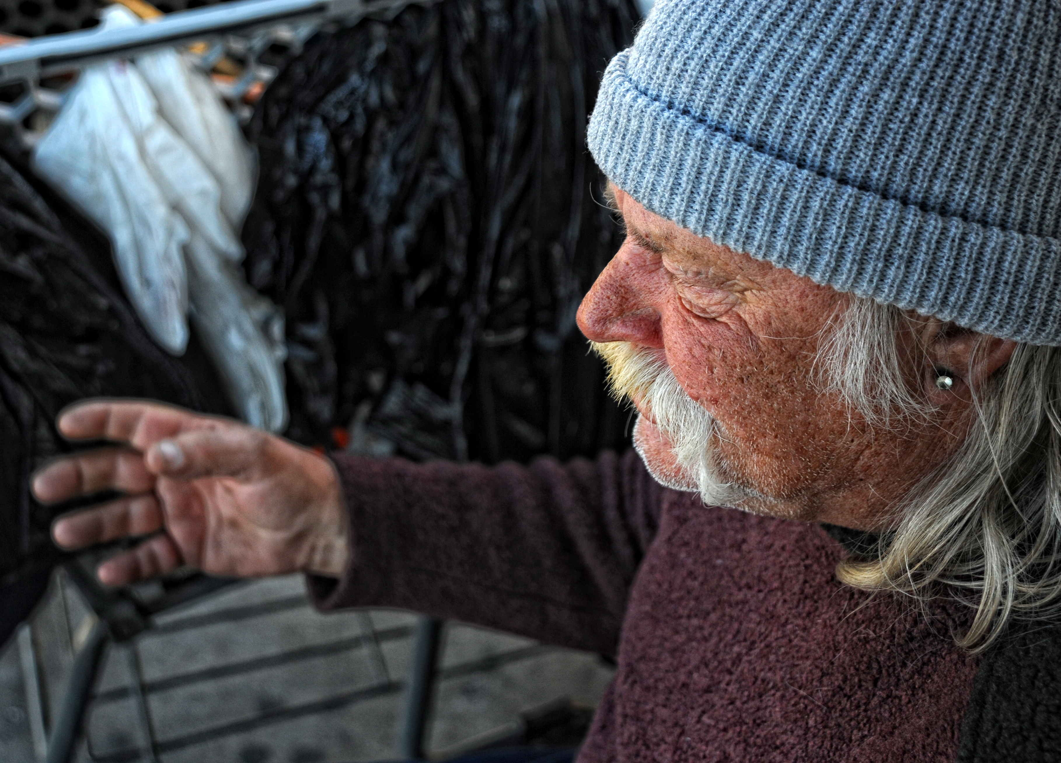 “Me and Mike, my partner who’s over at McDonald’s right now” as he point to his cart, ” We stick together. We hang together. We don’t associate with to many people. We both got the same camp…I sleep on one side, he sleeps on the other”. They’ve been together for the past 5 years, ever since Lester was released from prison.