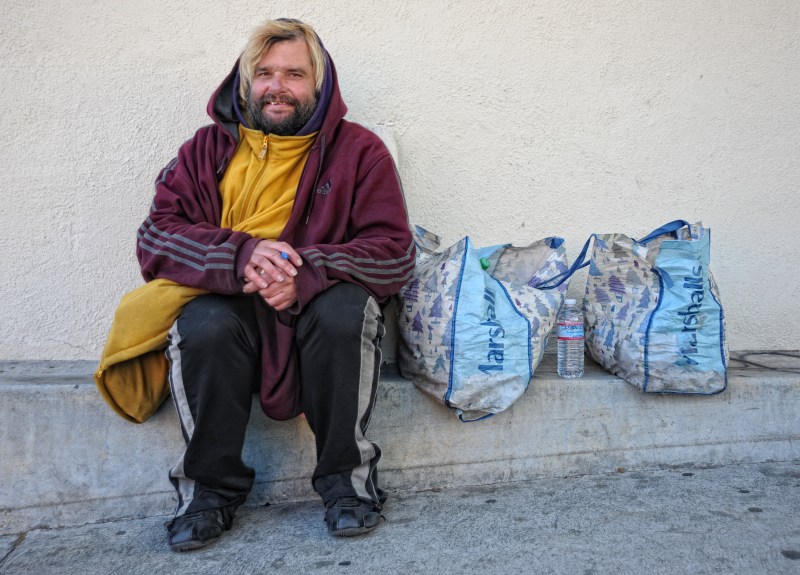 It’s almost Christmas on a blue sky day in Los Angeles. For Guy, there are no worries and his gratitude shines through his smile. On the streets here for “a…